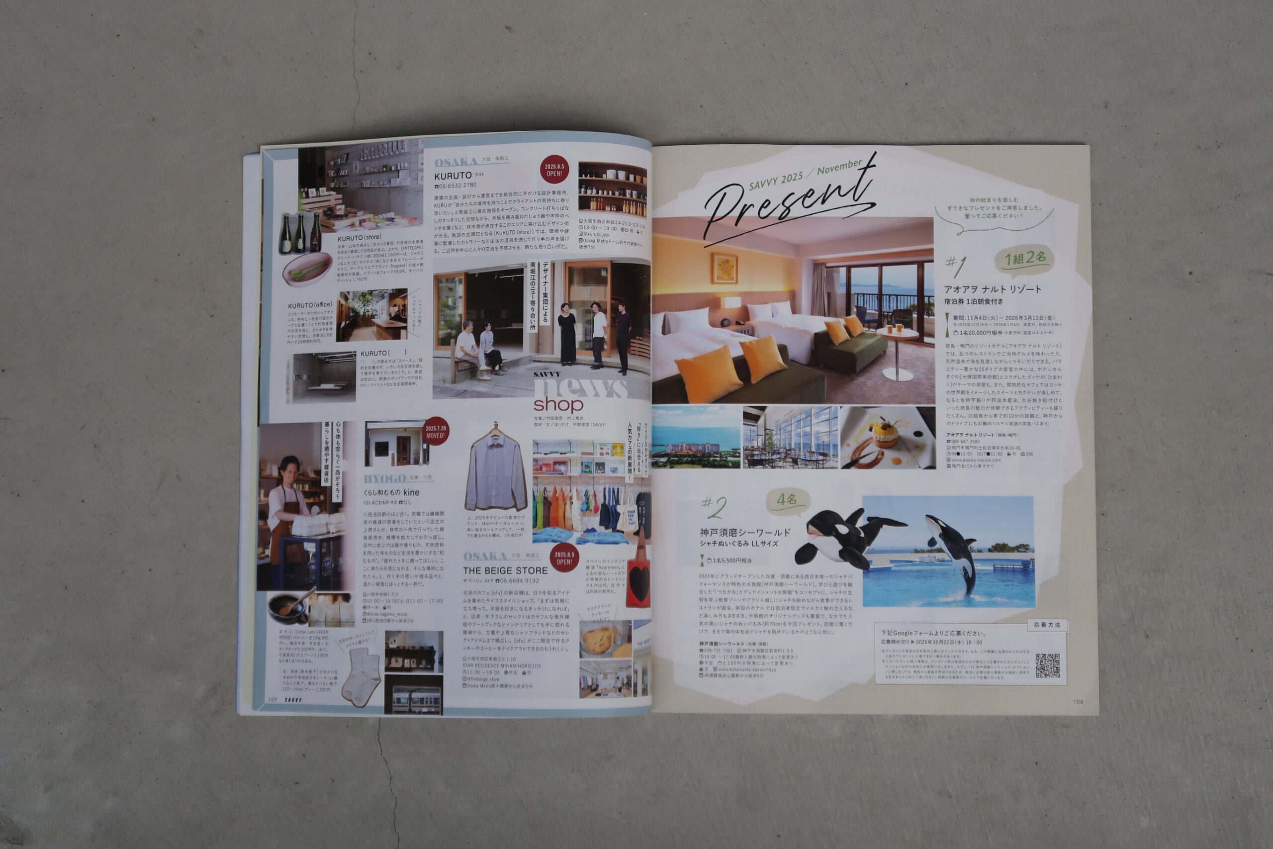 9月22日発売のSAVVY11月号「神戸阪神間」のnews shop特集にて