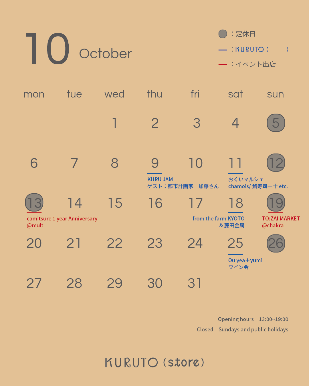 また、今月はKURUTOから素敵な商品を持ってイベントにも出店予定です。