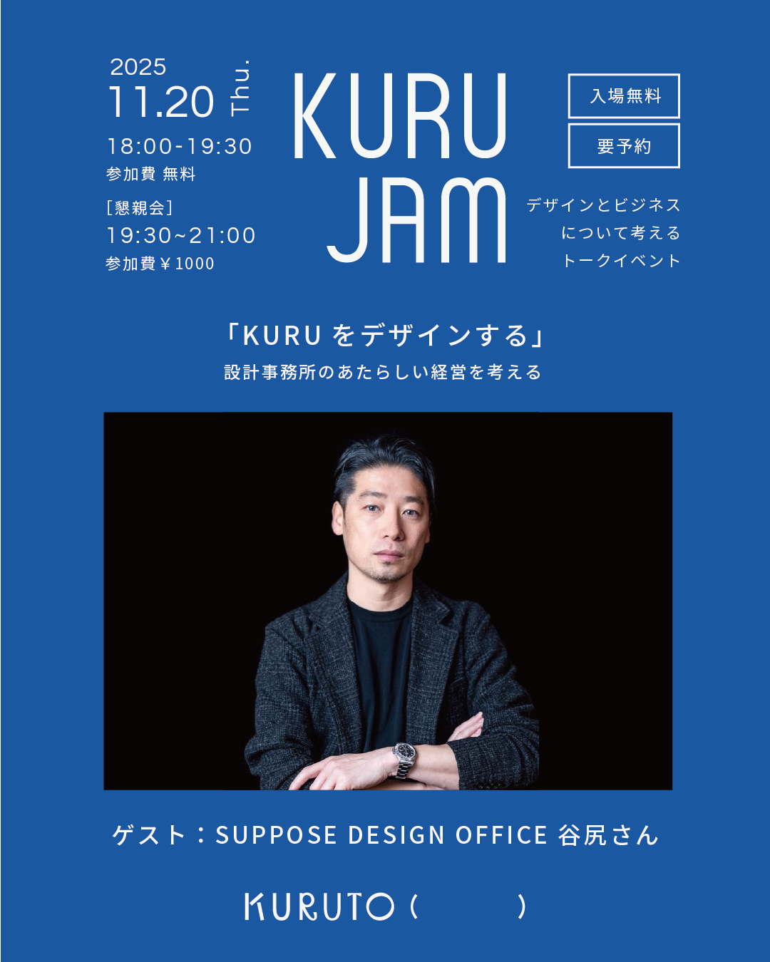 KURUの経営や今後の事業展開を谷尻さんに公開で相談するという、これまでのKURU JAMとは少し異なる形でお届けする予定です。