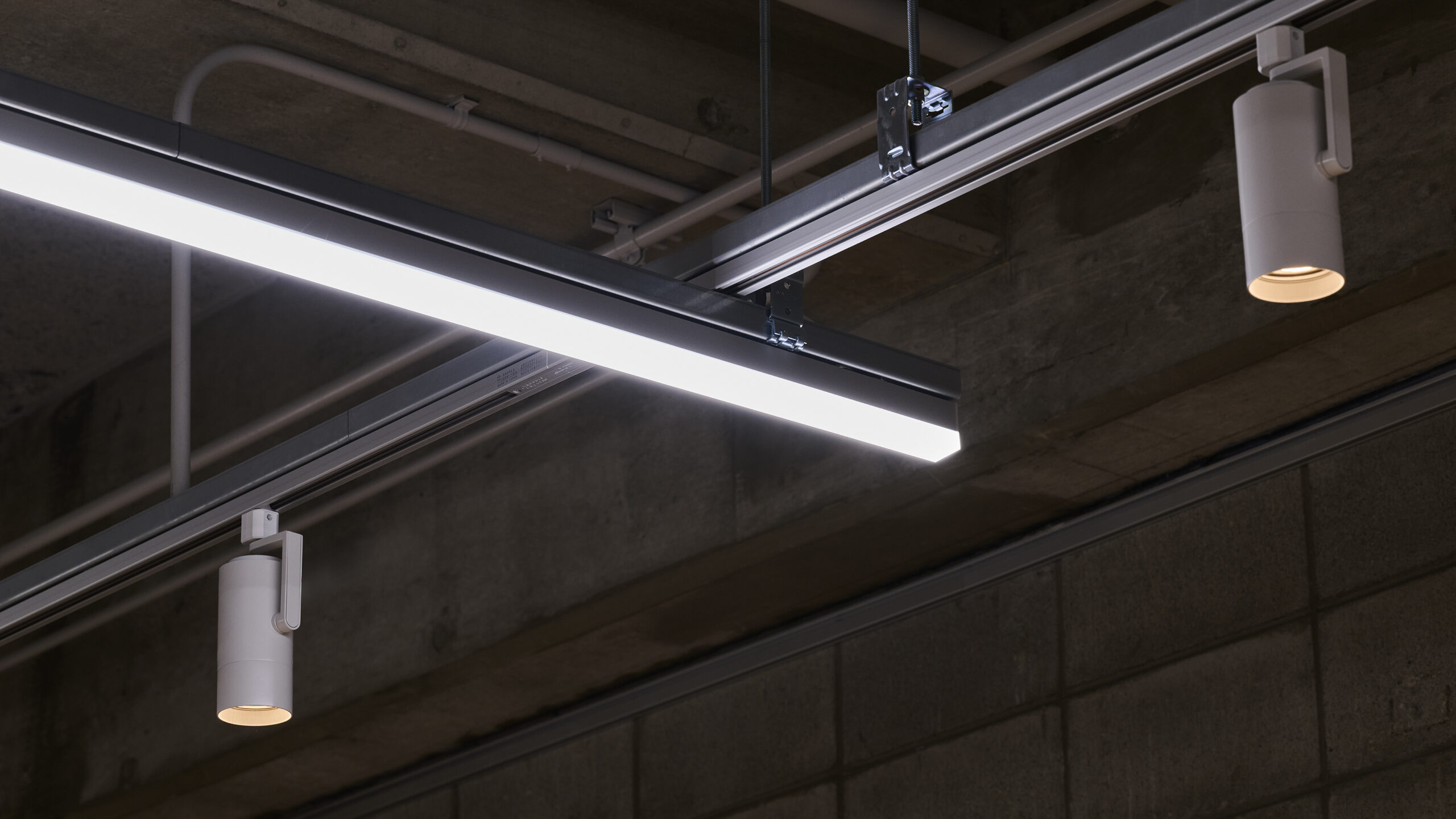 ベース照明とスポットライトは株式会社遠藤照明の商品を採用しました。調光・調色が可能で、照明を調整するだけでもがらりと雰囲気が変わります。