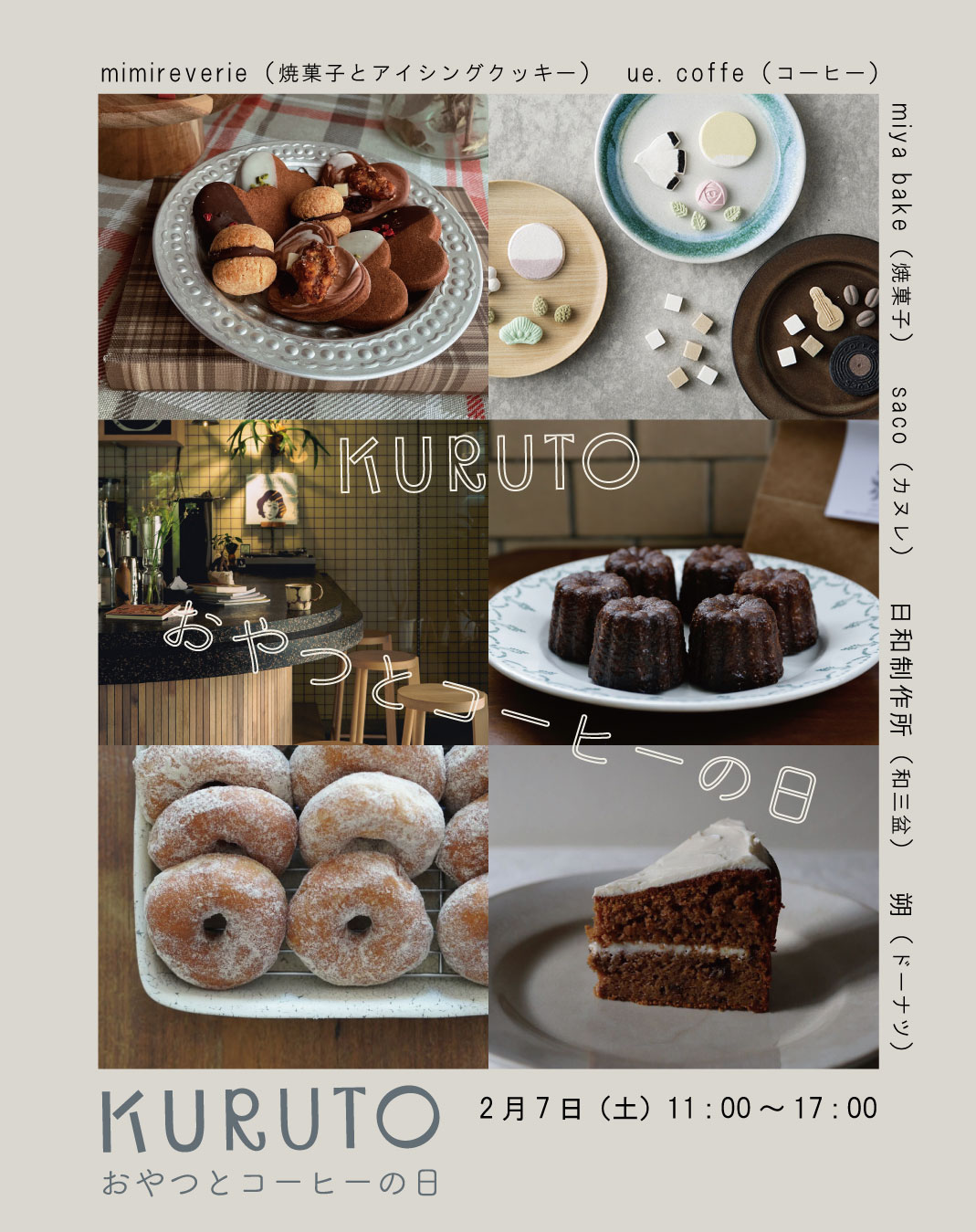 KURUTO( )で開催するマルシェ。今回は、「おやつとコーヒーの日」です。