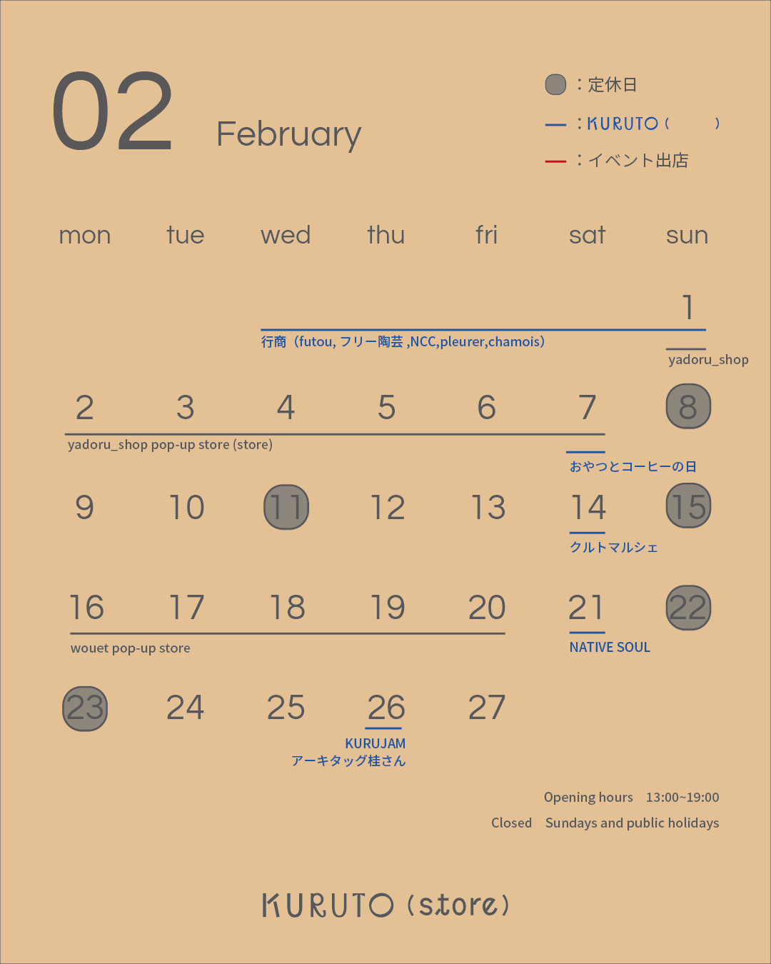 イベント情報は随時更新していきます!最新の情報はこちらのページ、もしくはKURUTOのインスタグラムでご確認ください♪