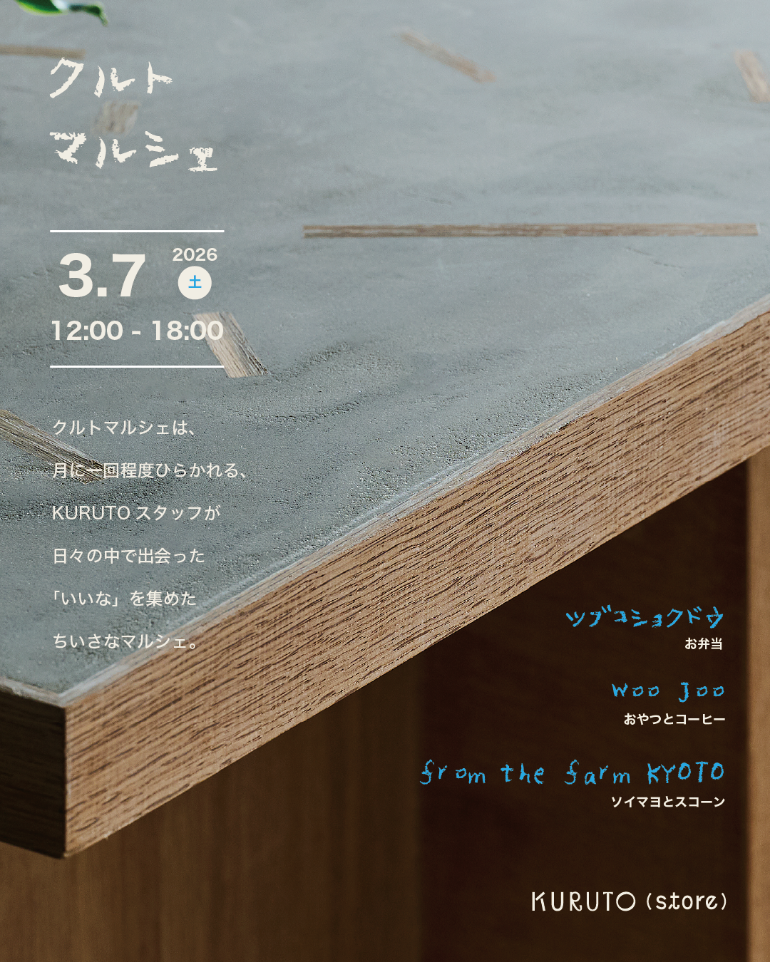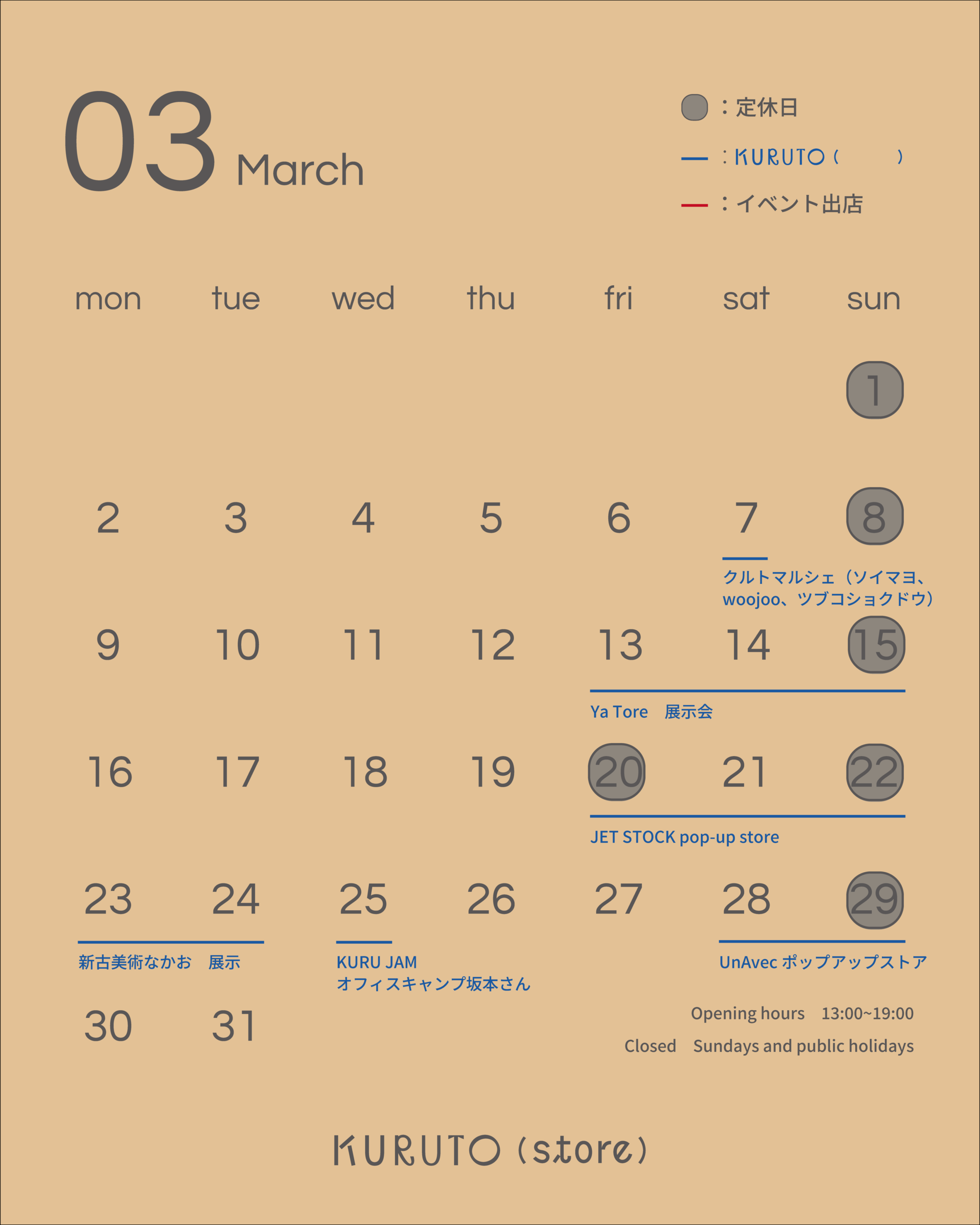 ※KURUTO(store)は日曜日はお休みです。