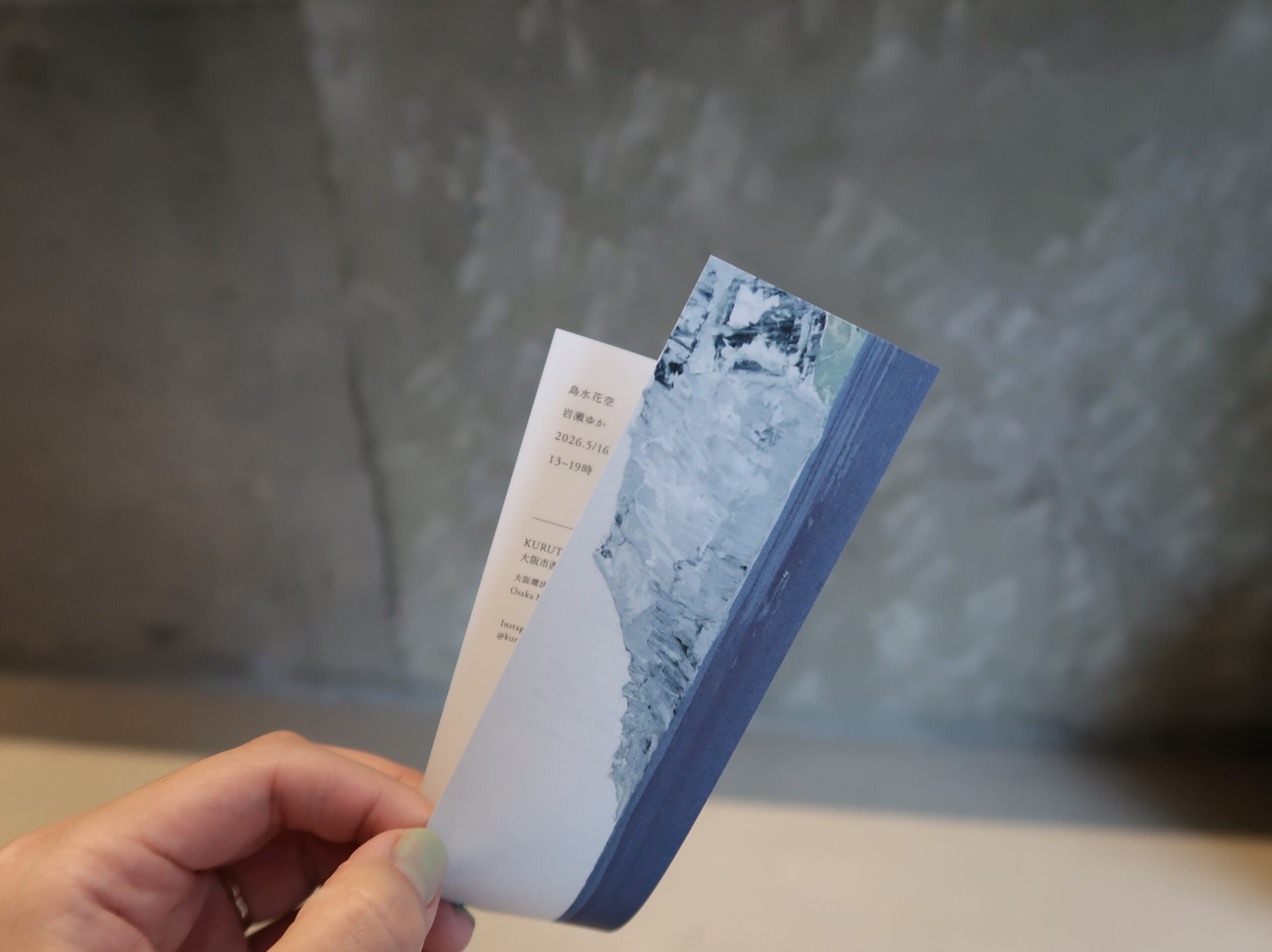 イベントが終わった後も大切にしてもらえるようなDMを作成したいと思って、角谷さんに相談しました。印刷物を作ることにもだんだん慎重になってきていて。展示の情報を記載した紙はしおりとしても使用していただけたらうれしいです。