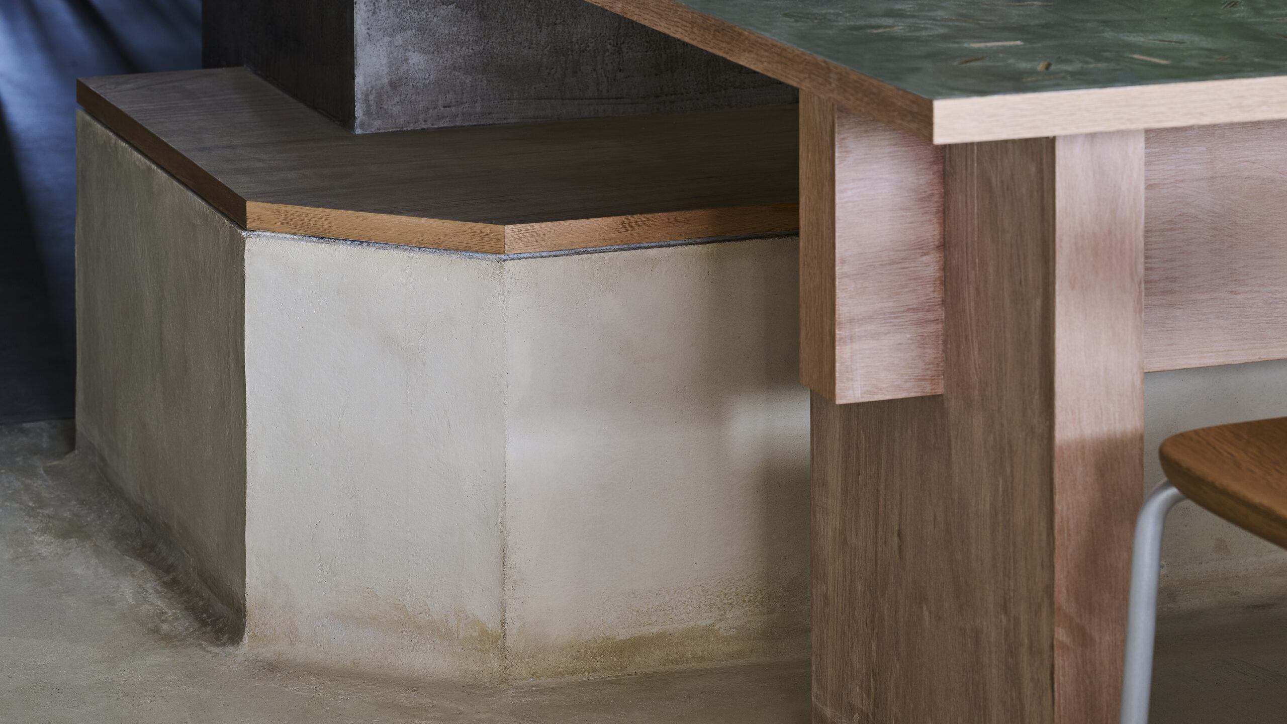 Within the existing interior, elements such as the rhythm of concrete blocks lining a rough wall, the new sense of depth created by removing partitions, and traces of the area’s history as a timber district offered rich layers of context at multiple scales. By reinterpreting and scattering these existing elements throughout the space, the design aims to evoke a landscape-like composition where these fragments coexist in harmony.